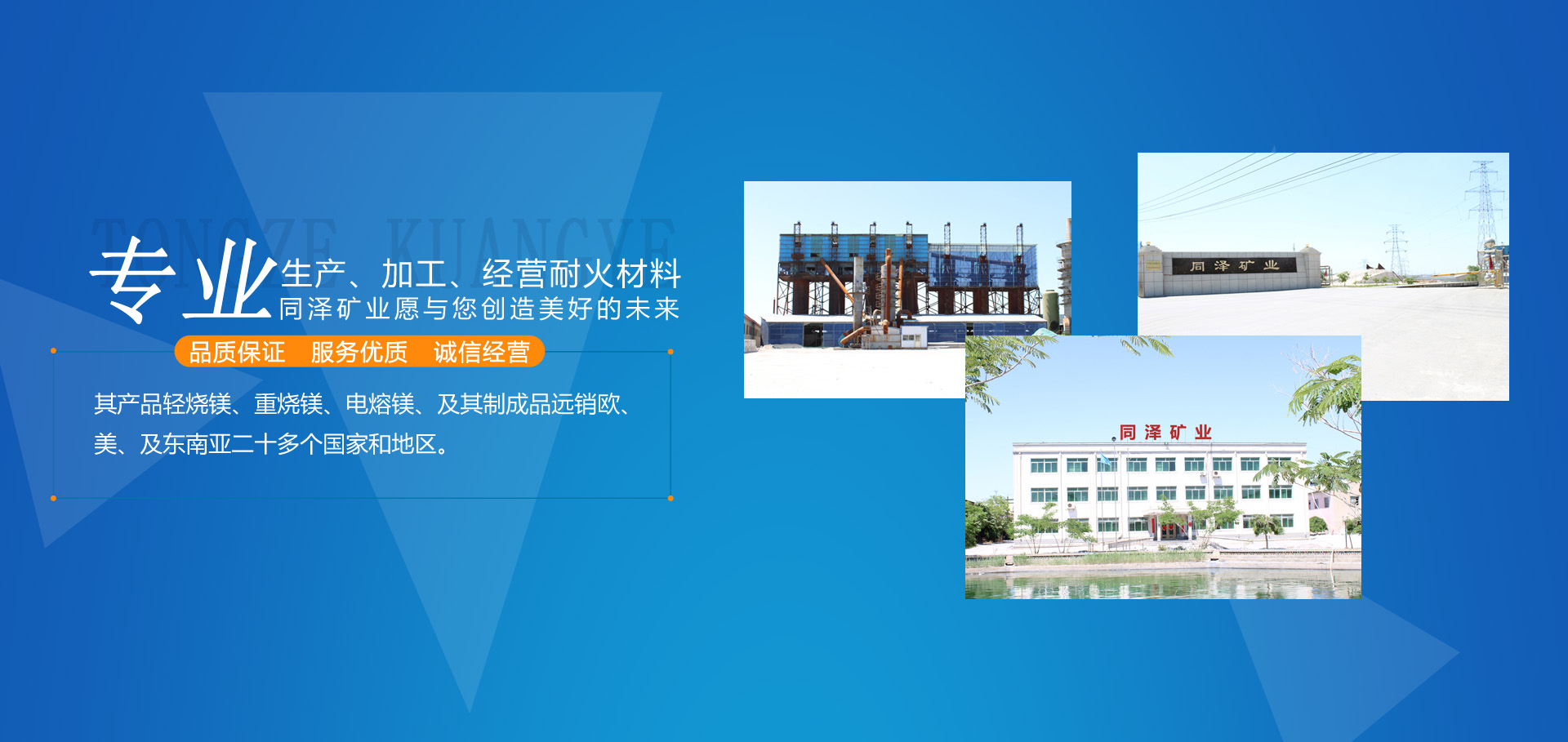 大石橋市同澤礦業(yè)有限公司,是以生產(chǎn)、加工、經(jīng)營各種耐火材料為主的綜合性經(jīng)濟實體。其產(chǎn)品輕燒鎂、重?zé)V、電熔鎂、及其制成品遠銷歐、美、及東南亞二十多個國家和地區(qū)。